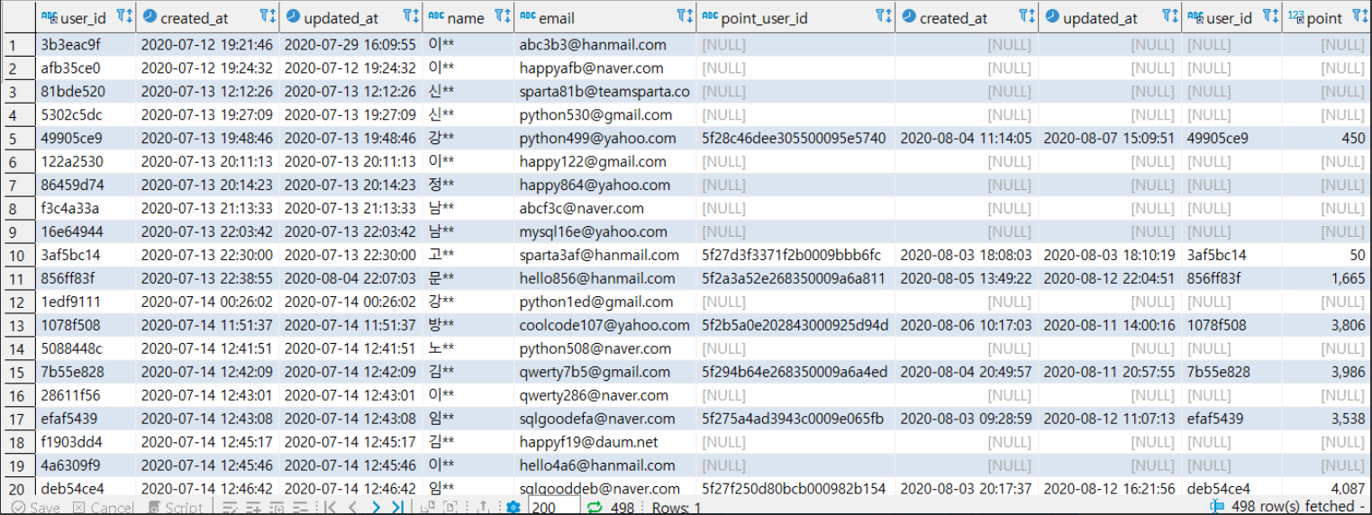 left join point_users pu on u.user_id = pu.user_id // point_users를 users에 붙인다.