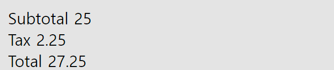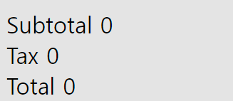 이처럼 getter를 통해서 각각의 subtotal, tax, total등을 계산하고 정의했고 이는 화면에 똑같이 출력되는 걸 확인해볼 수 있다.