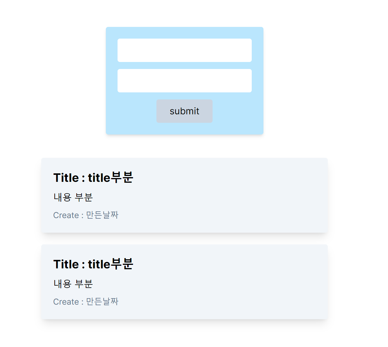 어떤 효과도 입히지 않은 정말 간단한 form 입력창이 하나 만들어졌고 다음으로 PostList또한 간단하게 만들어보자