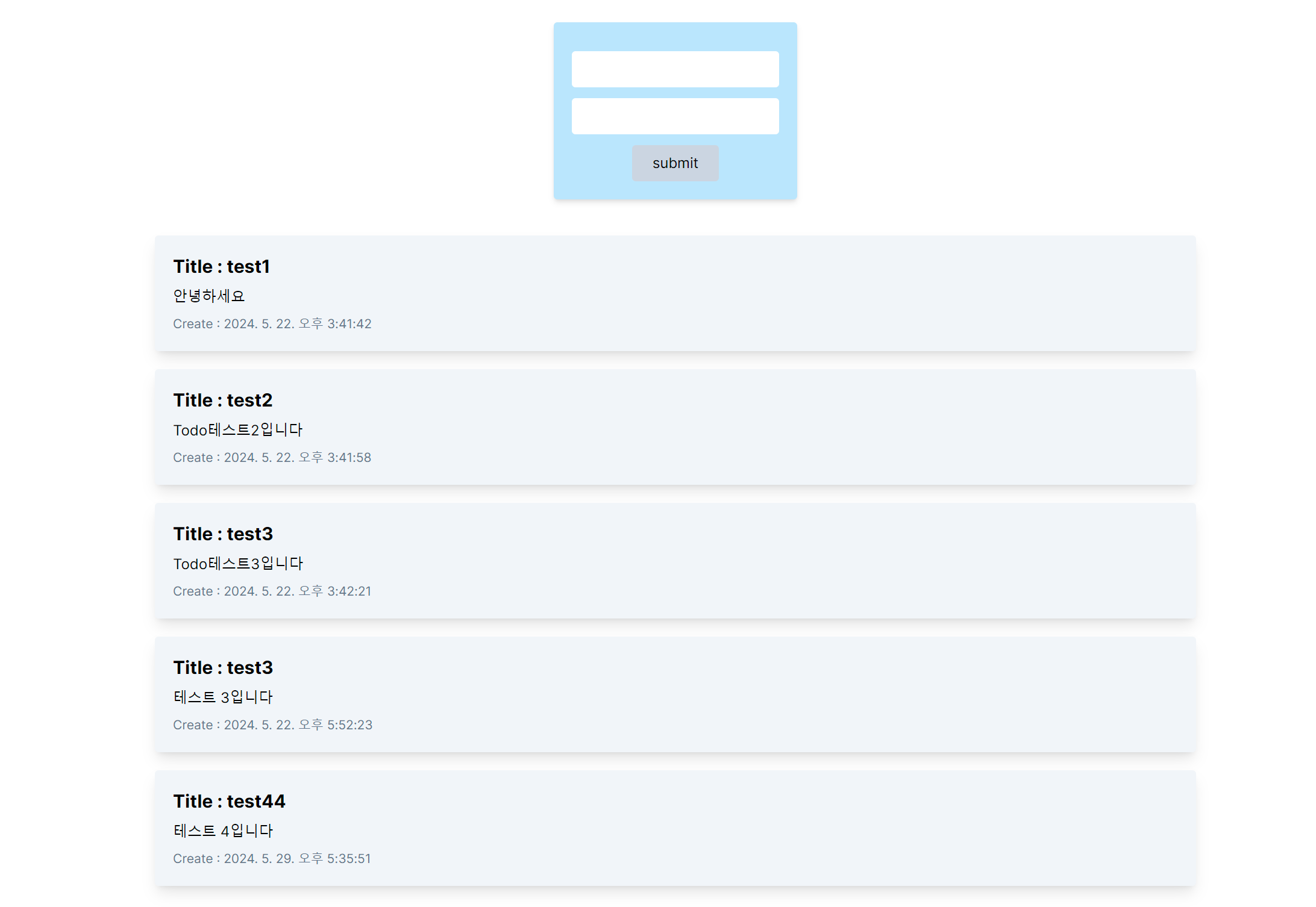 이렇게 아주 간단한 입력창과 todo 창이 완성된 걸 확인해 볼 수 있다